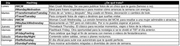 yo recomiendo en sus cuentas de RRSS de marketing usar uno a la semana, el dia que corresponda, pero que no choquen uno con el siguiente, este tipo de TREND sube muchisimo la calidad de la cuenta, personal o comercial y aumenta los seguidores lo que hace que tengan mas intertacciones y posibles clientes!...